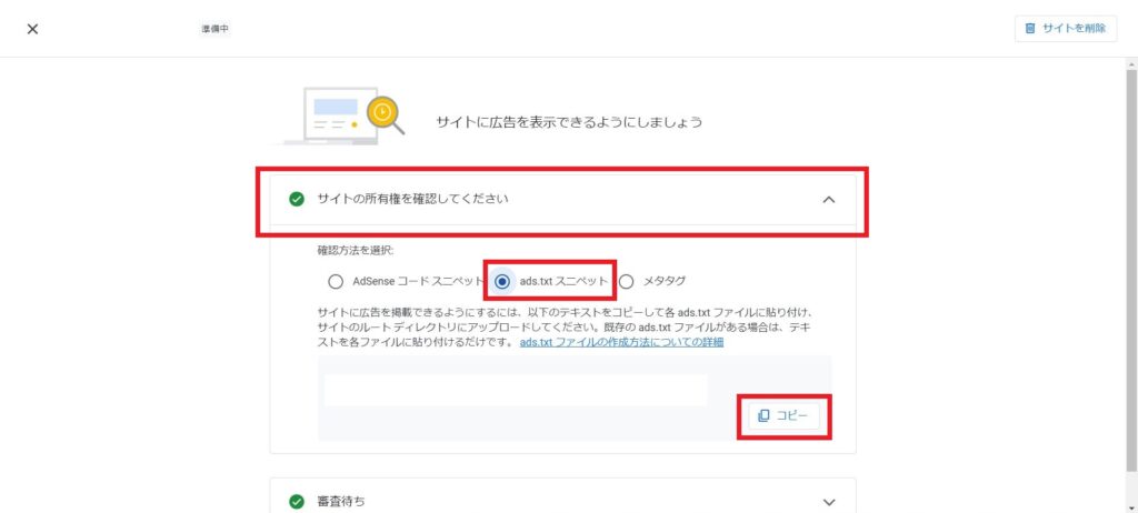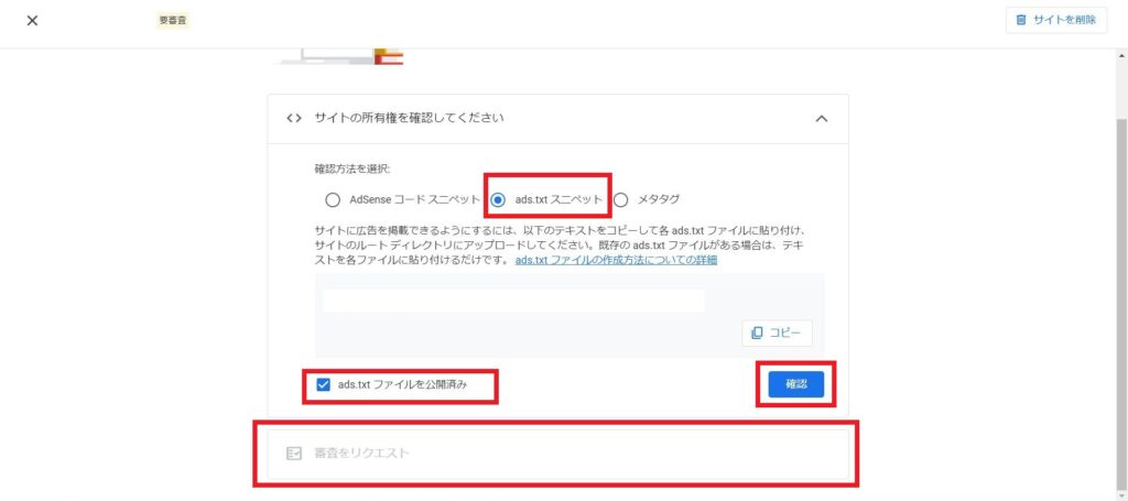 ads.txtスニペットをコピーする